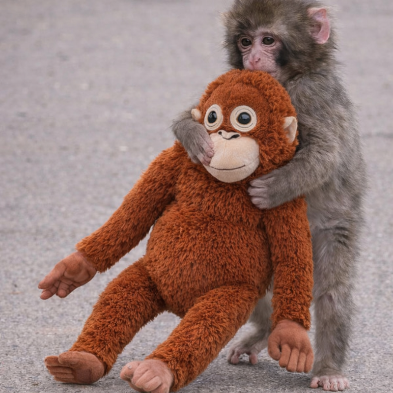 Until his zookeepers gave him a plush orangutan. He chose her instantly. He hasn’t let go since.